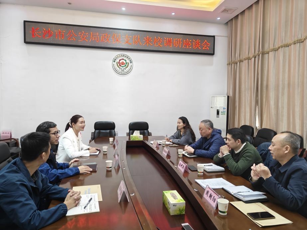 11月6日上午,长沙市公安局政保支队和芙蓉分局政保大队相关负责人来校调研,并在立达楼207召开座谈会。会议由学校党委委员、副校长廖良林主持,学校党委委员、宣传统战部部长龙雯,保卫工作部、武装部部长张洲陵,学生工作部副部长李丹参加。